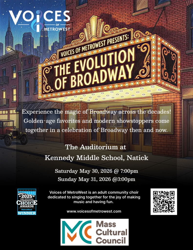 EBT, WIC, and ConnectorCare cardholders can purchase tickets for up to four people at a 75% discount (no charge for children under age 7) for our seasonal, family-friendly performances. To purchase tickets online, send a copy of your benefit card to discount@voicesofmetrowest.com to receive the code. To purchase tickets on performance days, simply show your benefit card at the door.